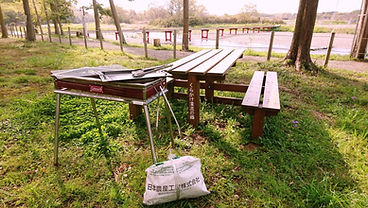 (バーベキューグリル 、焼き網、炭ばさみ、炭3kg、トング、森林エリア常設テーブル)